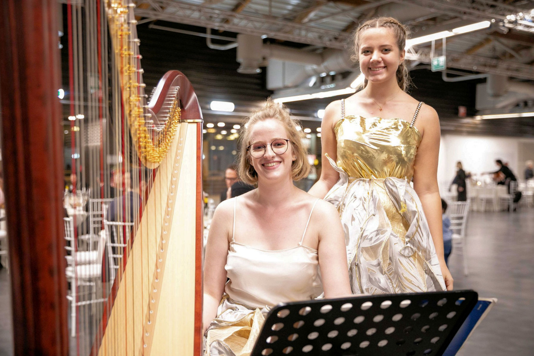 Für Musik mit Harfe und Gesang sorgten diese beiden Damen
