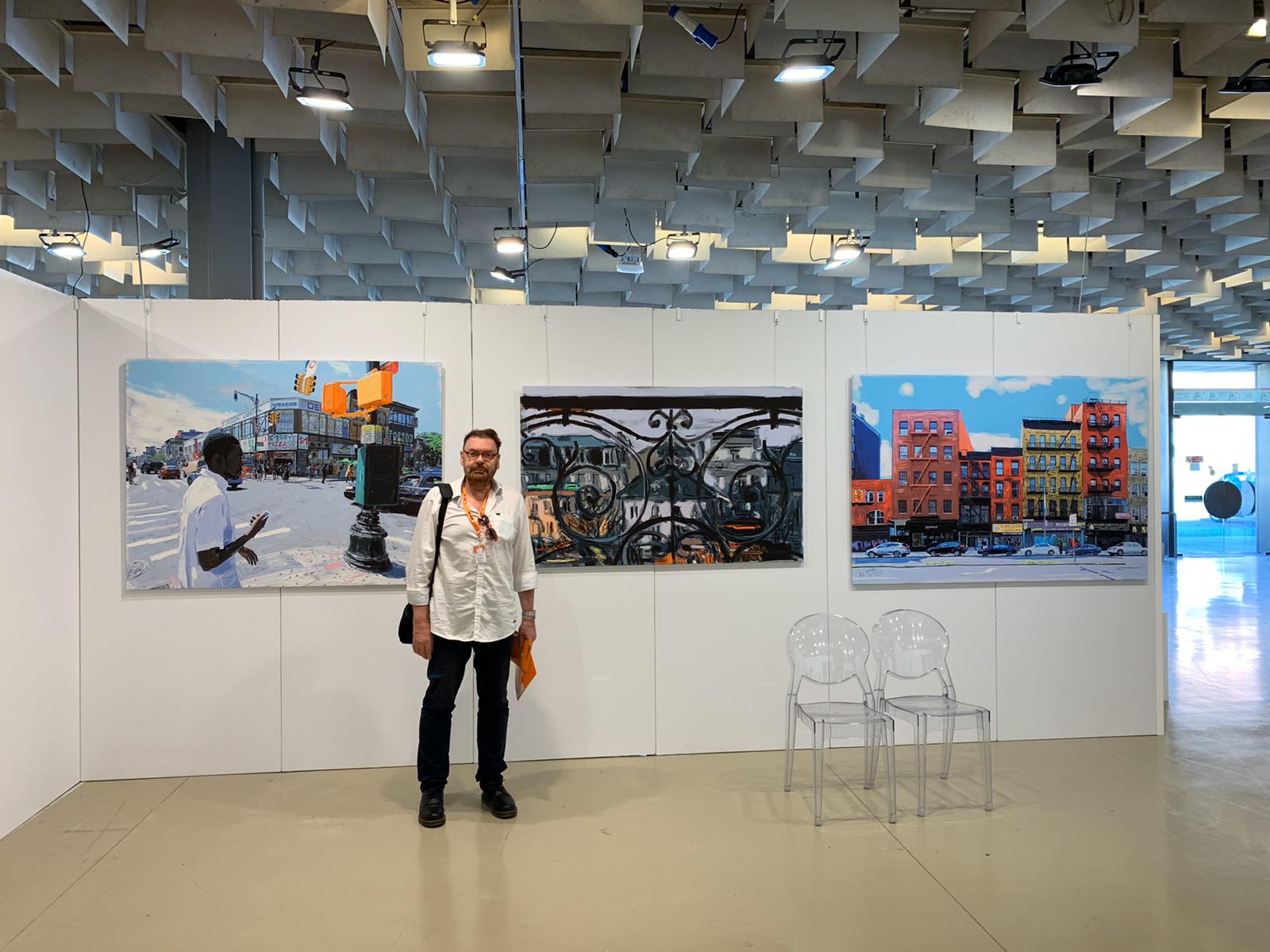 Wolfgang Hock vor seinem Bild "Bowery Home Supplies"